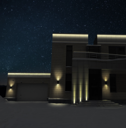 1. Настенные. Они крепятся к стене здания, беседки, любой другой постройки. Освещают территорию вокруг и часть самого объекта. Часто применяются в качестве дизайнерского элемента, особенно когда нужно подсветить эффектную отделку здания.